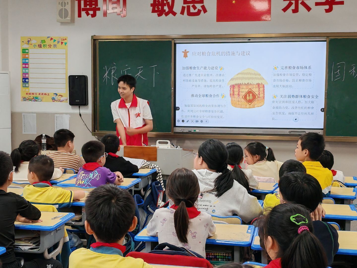 星火志愿队走进光谷第五小学,开展以“粮安天下,国稳民安”为主题的志愿宣讲活动。“一粥一饭,当思来之不易;半丝半缕,恒念物力维艰。”在物质日益丰富的今天,珍惜粮食依旧有着重大的现实意义。