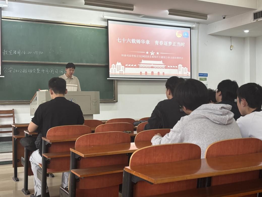 新闻网讯(学生通讯员 李晴阳)青春心向国,奋进迎华诞。今年是中华人民共和国成立76周年,为了厚植同学们的家国情怀,引导其在奋进中找准青春坐标,10月13日下午,公安2402团支部于文波305,开展“七十六载铸华章,青春奋进正当时”主题团日活动。