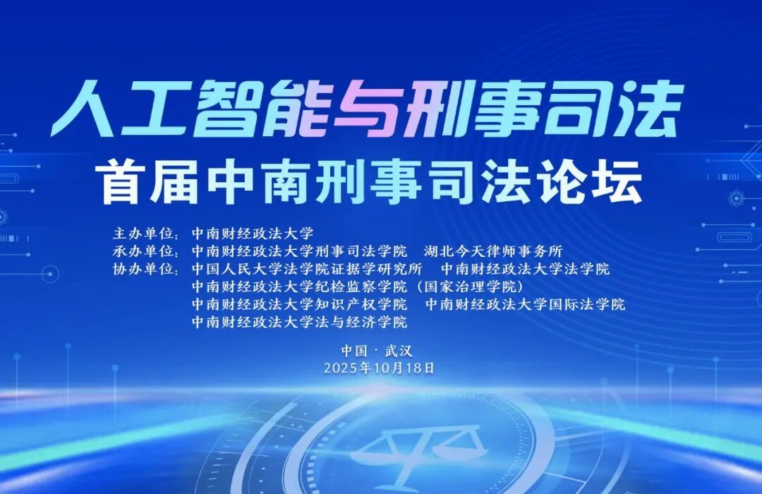 与湖北今天律师事务所共同承办的“首届中南刑事司法论坛”在中南财经政法大学法科大楼报告厅隆重举行。本次论坛以“人工智能与刑事司法”为主题,来自高校、司法机关、律师事务所及科技企业的专家学者200多名聚集一堂,共同探讨人工智能时代刑事司法领域的新机遇与新挑战。