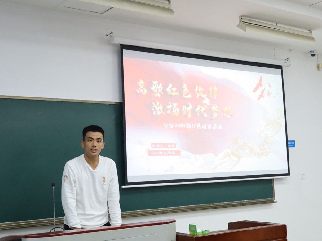班会伊始,团支书邵昱深入阐述了经典歌曲作为精神瑰宝的深远意义。他指出,这些优秀作品不仅是时代的见证者,更是激励我们勇往直前的强大精神支柱。邵昱鼓励同学们结合自身对优秀文化精神的理解,共同探讨并民主推选最能代表班级心声的演唱曲目。