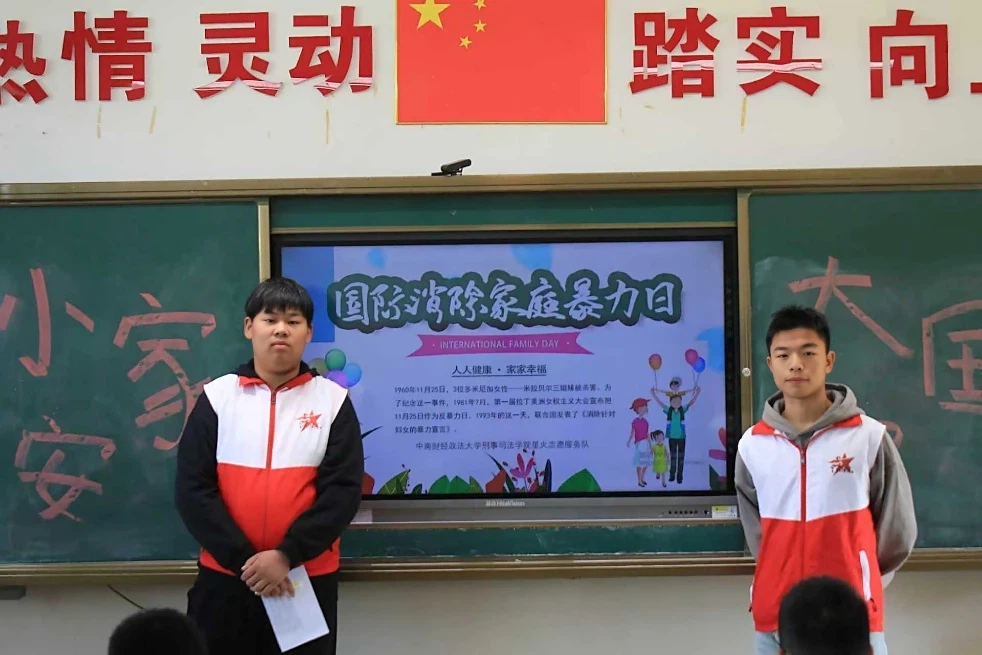 互动问答环节气氛热烈,“国际反家暴日是哪一天?”“遇到家暴应该怎么办?”等问题引发同学们踊跃回答。大家纷纷表示,不仅要学会识别和防范家暴,还要提醒身边同学,互相成为彼此的“守护小卫士”。