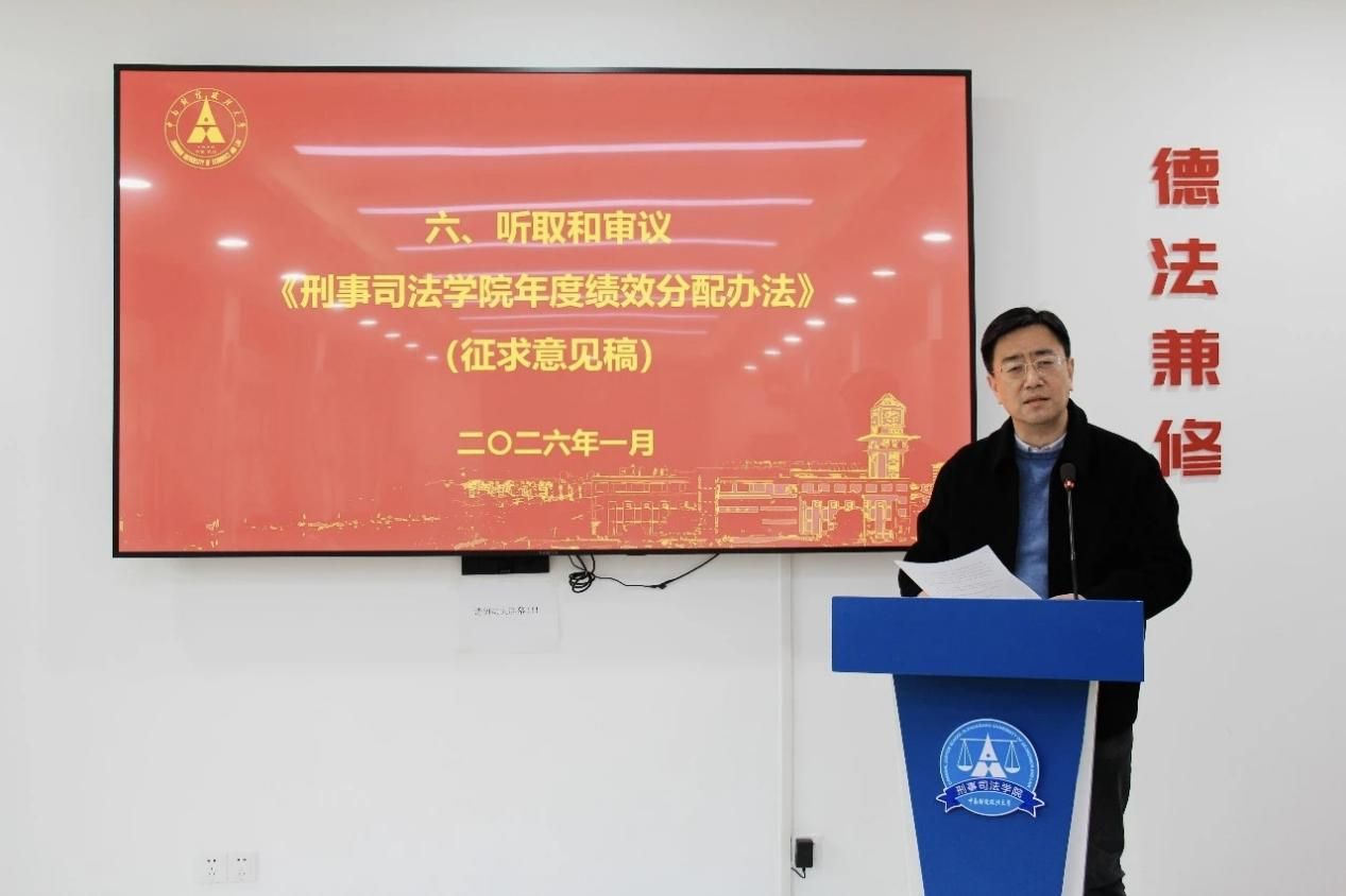 院党委书记张志刚全面介绍《nba在线看 年度绩效分配办法》。他指出,绩效分配改革是激发办学活力、推动内涵发展的重要举措。本次修订坚持以公平公正、优绩优酬为导向,在广泛调研和民主协商的基础上,进一步完善了考核评价体系和分配激励机制,旨在更好体现教师价值、激发创新动能、促进事业发展。他强调,该办法的实施将为nba在线看 高质量发展提供坚实的制度保障,希望全院教职工凝聚共识,共同推进改革落地见效。