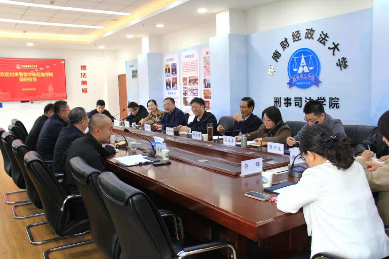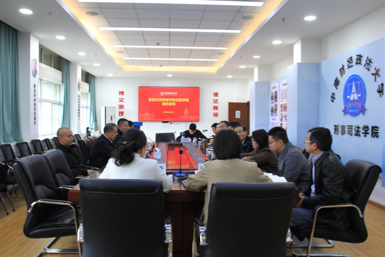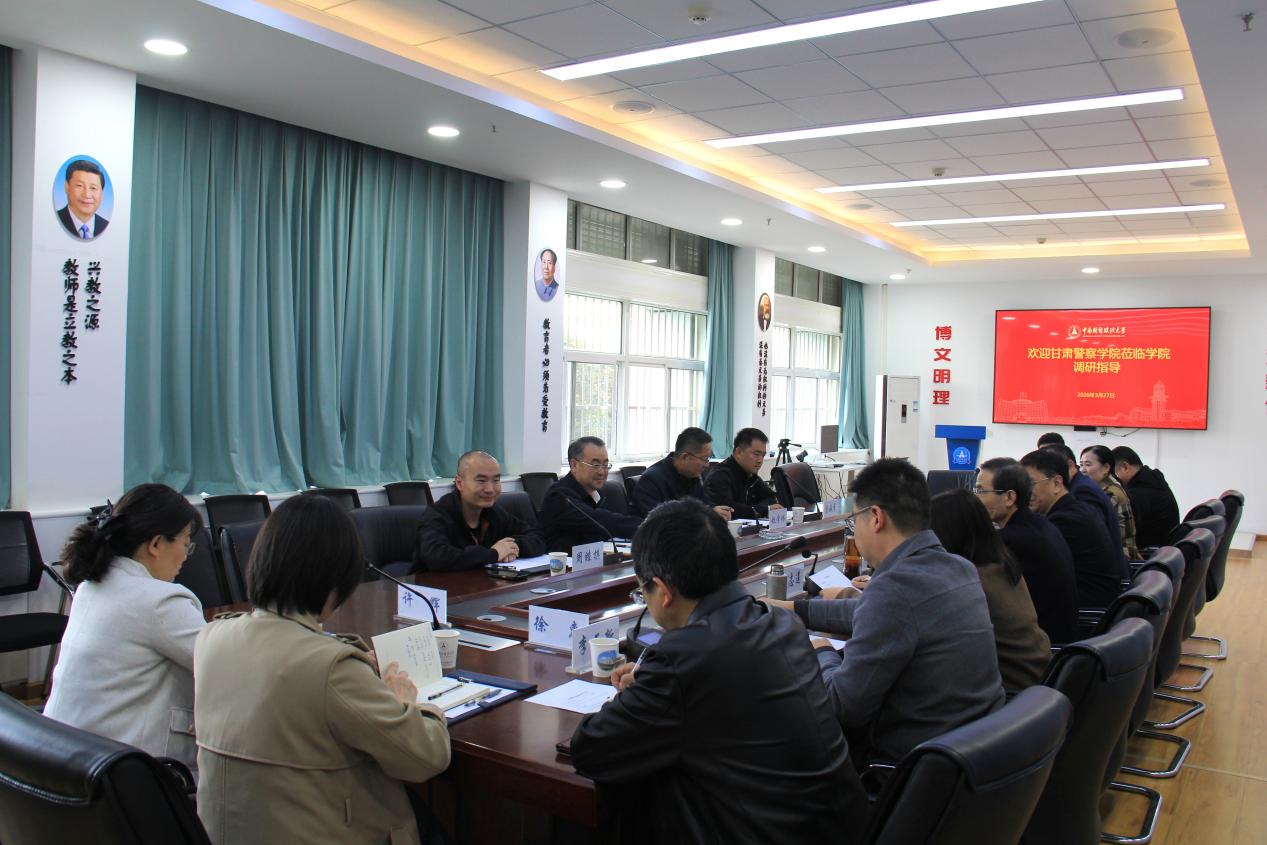 (学生通讯员 肖闳天)3月27日下午,甘肃警察nba在线看 党委副书记、院长卢建军,党委副书记赵学琳,法律系副主任周睦棋、人事处干部管海彦一行来访nba在线看 ,就两院合作与人才招聘相关事宜,在文治楼二楼会议室开展调研交流。nba在线看 党委书记张志刚、副院长焦俊峰、党委副书记司志莲,nba在线看 二级教授、博士生导师杨宗辉,以及部分教师、博硕士研究生参加会议。